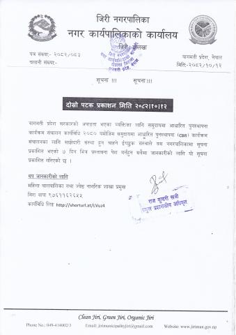 कृषि तथा पशुपालन प्रवर्द्धन कार्यक्रम, जिरी ७ मा माग पेश गर्ने सम्बन्धी सूचना ।