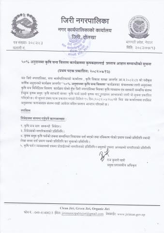 कृषि तथा पशुपालन प्रवर्द्धन कार्यक्रम, जिरी ७ मा माग पेश गर्ने सम्बन्धी सूचना ।