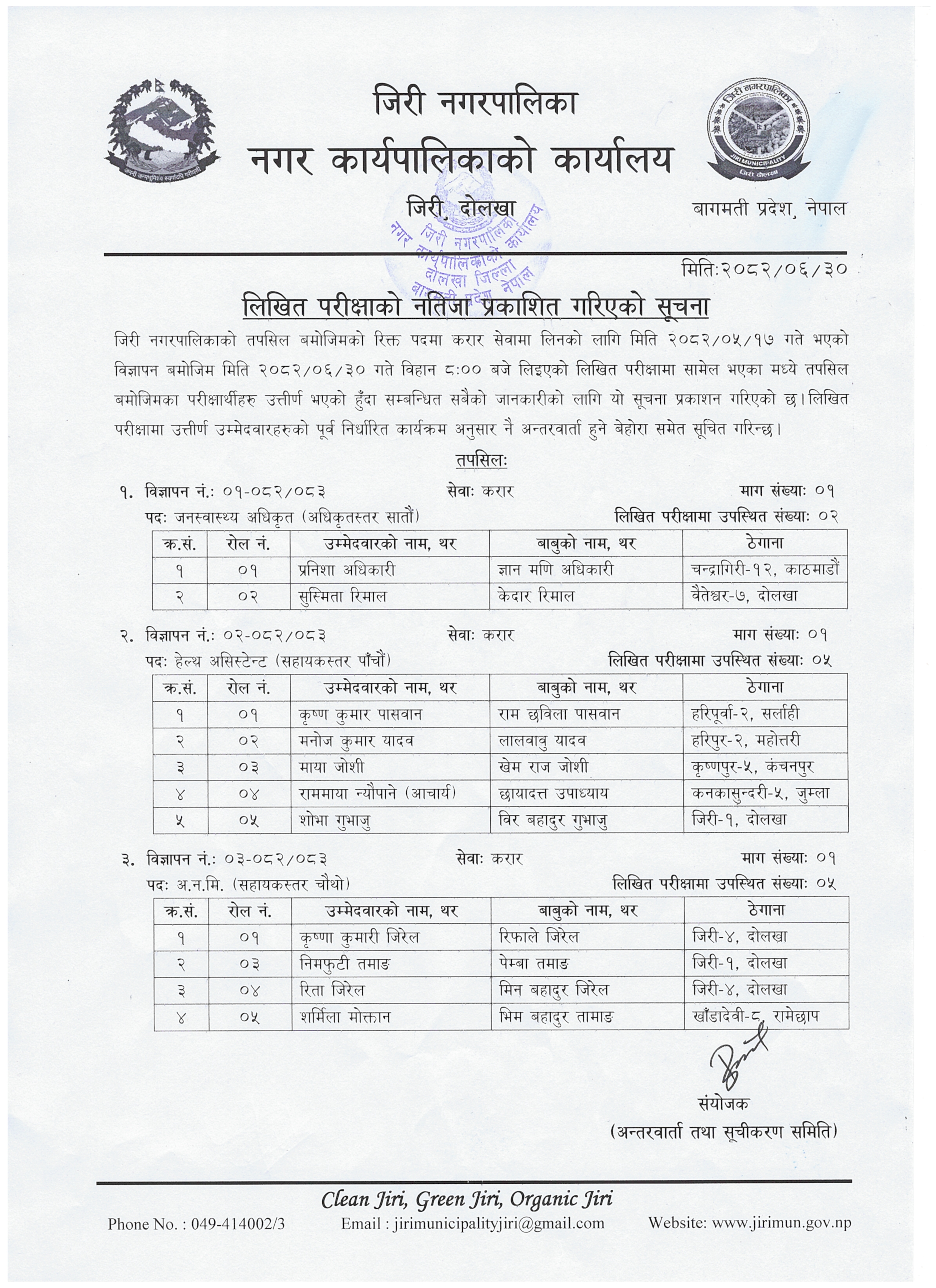 लिखित परीक्षाको नतिजा प्रकाशित गरिएको सूचना ।