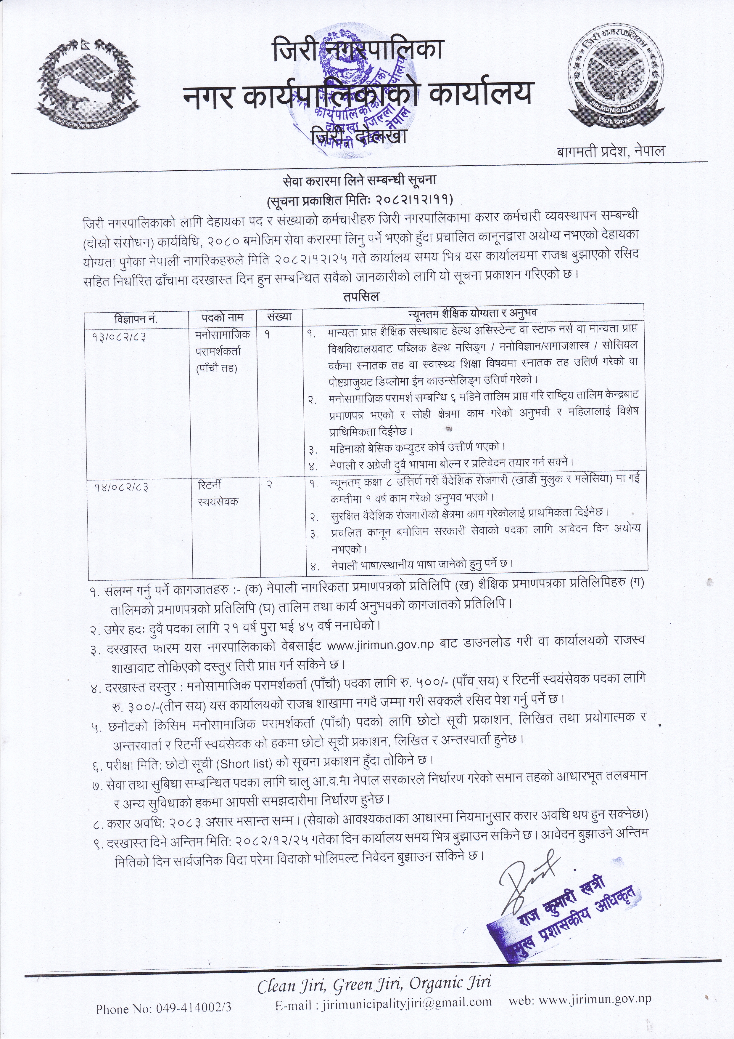 कृषि तथा पशुपालन प्रवर्द्धन कार्यक्रम, जिरी ७ मा माग पेश गर्ने सम्बन्धी सूचना ।
