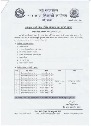 एकीकृत धुम्ती सेवा शिविर संचालन हुने बारेको सूचना ।