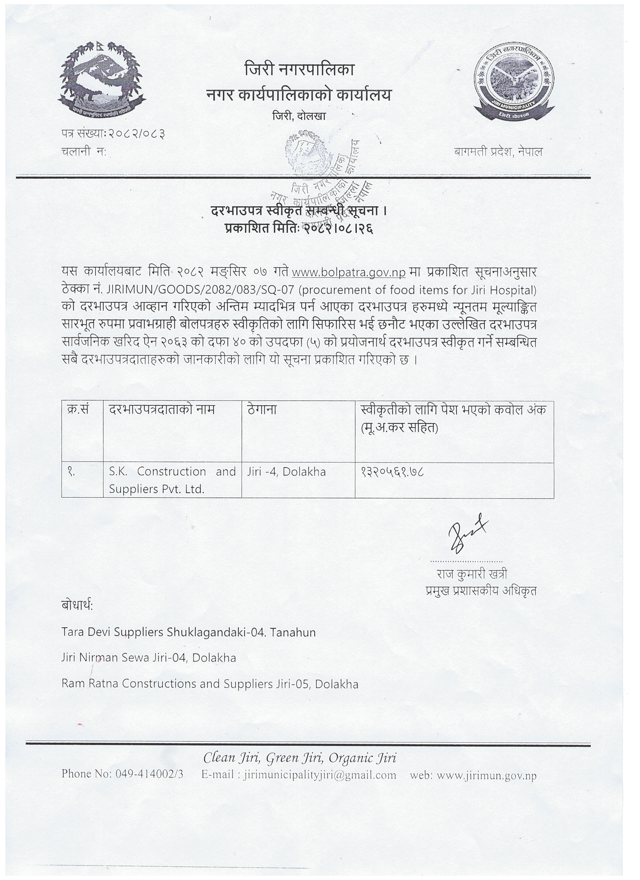 दरभाउपत्र स्वीकृत सम्बन्धी सूचना ।
