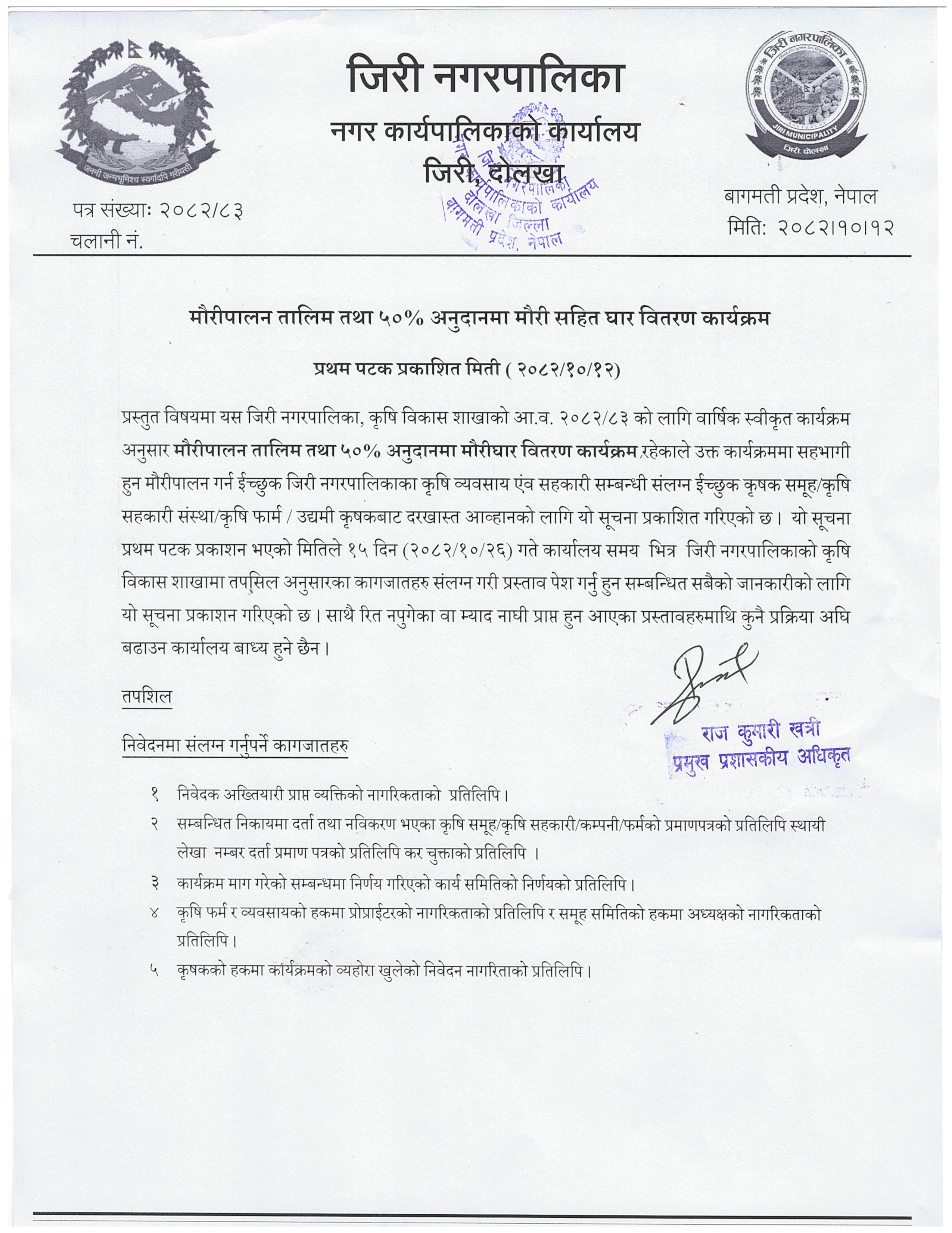 मौरीपालन तालिम तथा ५०% अनुदानमा मौरी सहित घार वितरण कार्यक्रम ।