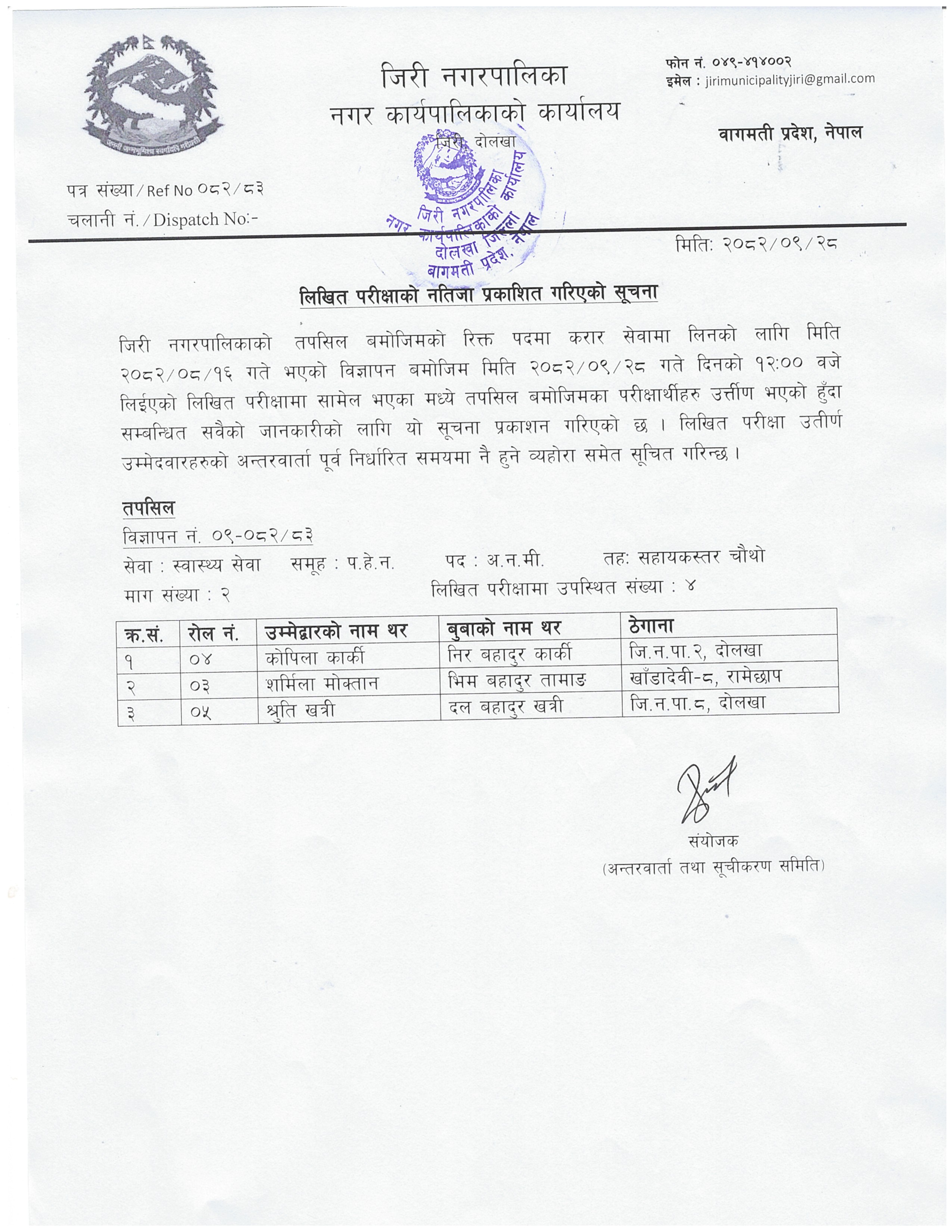 लिखित परीक्षको नतिजा प्रकाशित गरिएको सूचना (प.हे.न) तर्फ