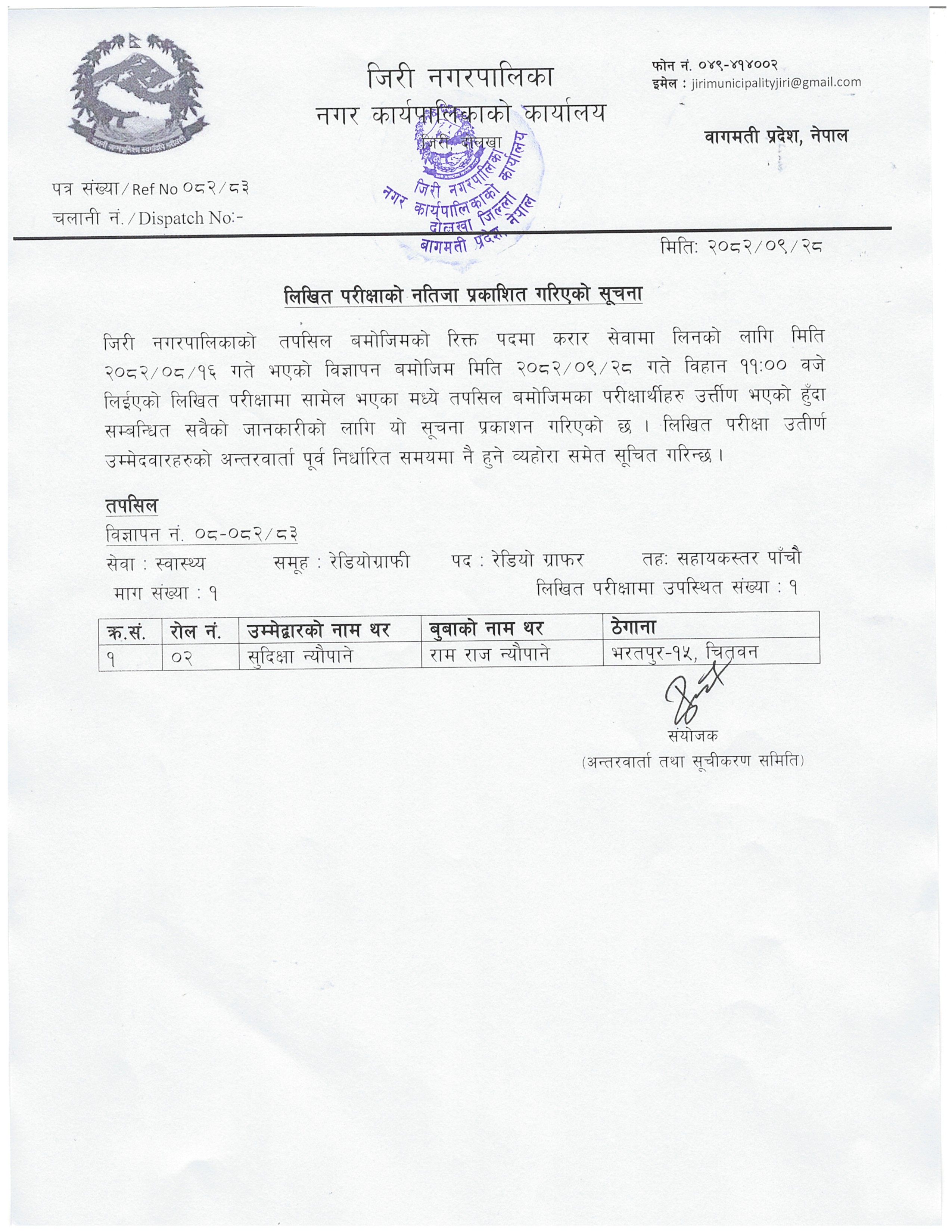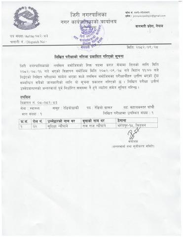 लिखित परीक्षको नतिजा प्रकाशित गरिएको सूचना (रेडियोग्राफी) तर्फ