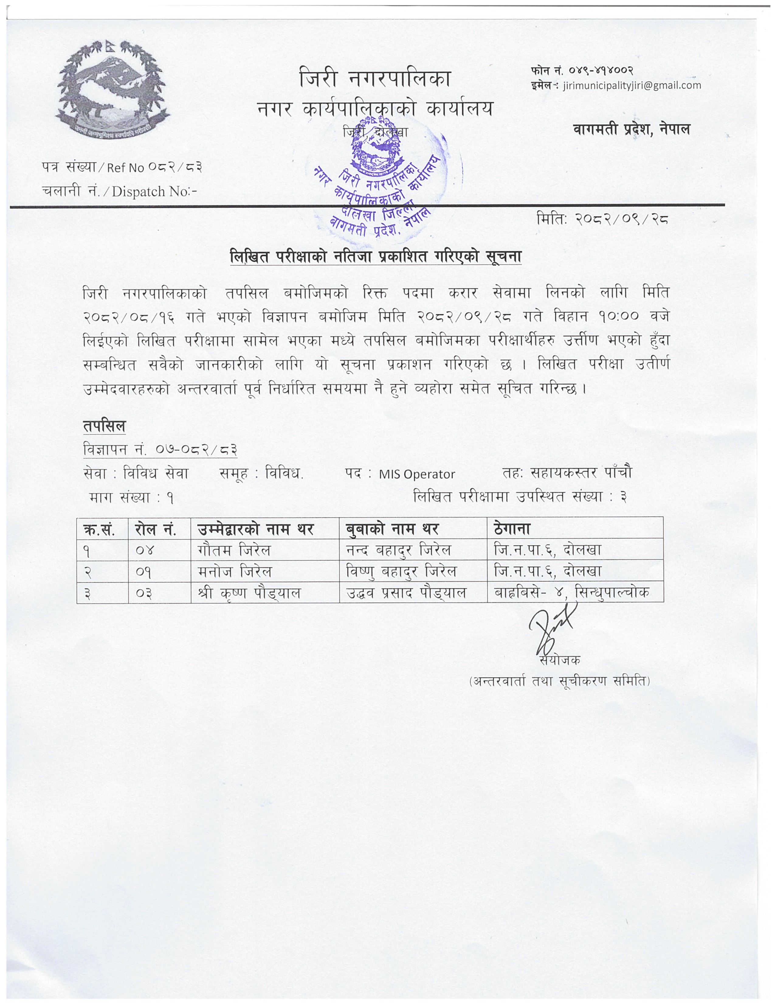 लिखित परीक्षको नतिजा प्रकाशित गरिएको सूचना (विविध) तर्फ
