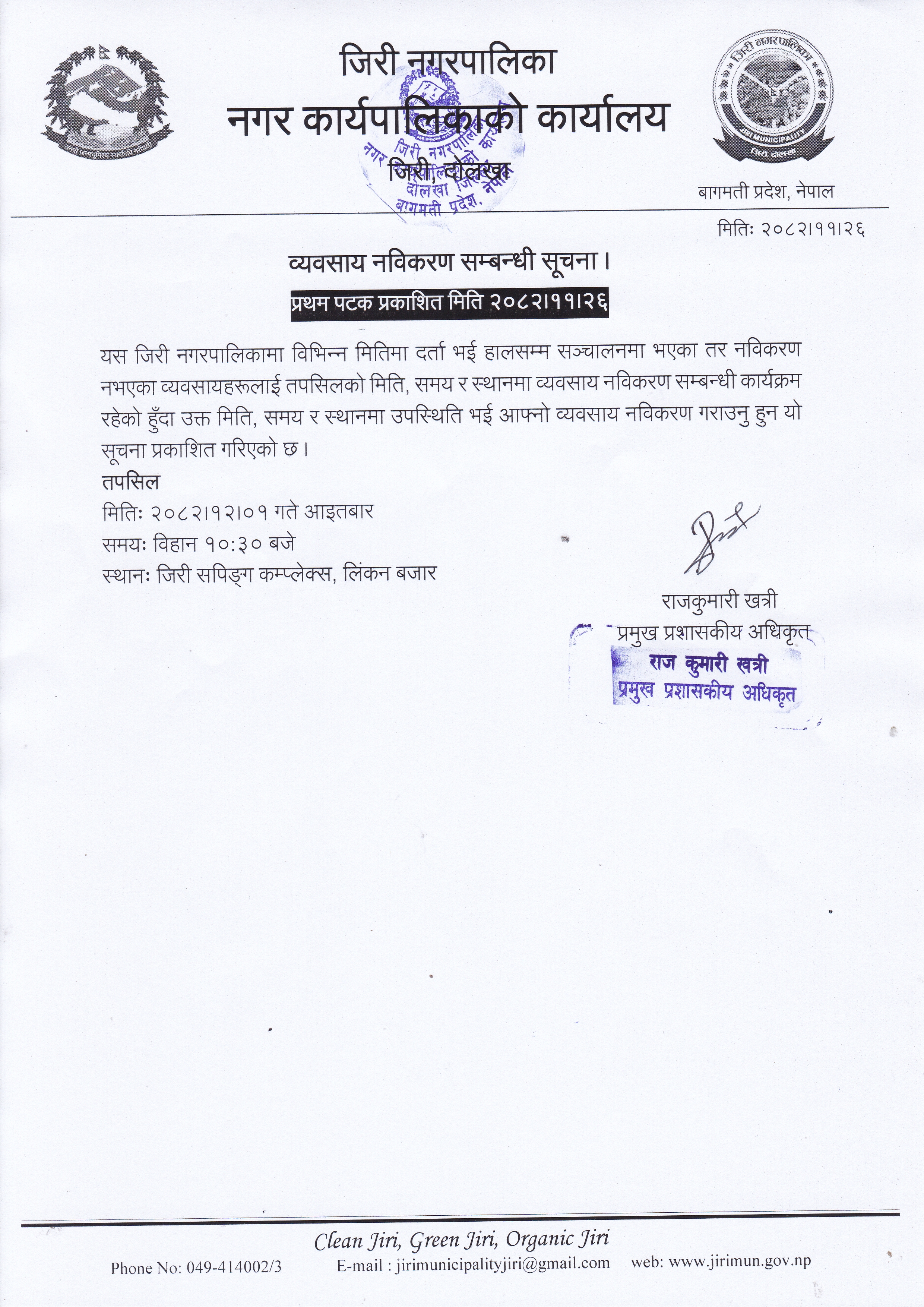 कृषि तथा पशुपालन प्रवर्द्धन कार्यक्रम, जिरी ७ मा माग पेश गर्ने सम्बन्धी सूचना ।