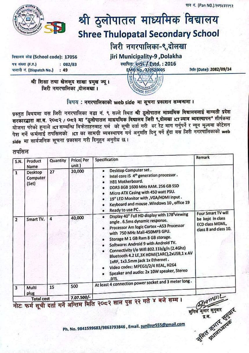 कृषि तथा पशुपालन प्रवर्द्धन कार्यक्रम, जिरी ७ मा माग पेश गर्ने सम्बन्धी सूचना ।