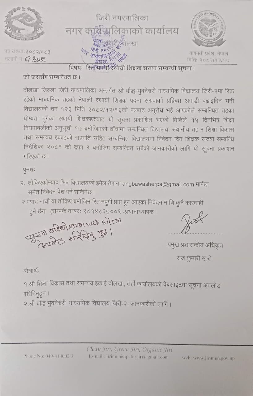 कृषि तथा पशुपालन प्रवर्द्धन कार्यक्रम, जिरी ७ मा माग पेश गर्ने सम्बन्धी सूचना ।