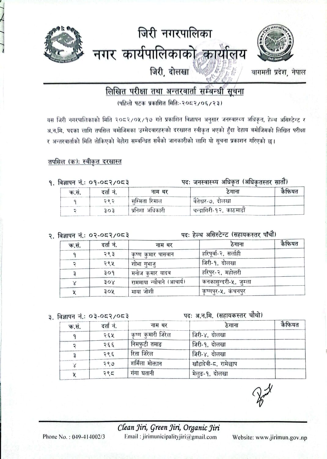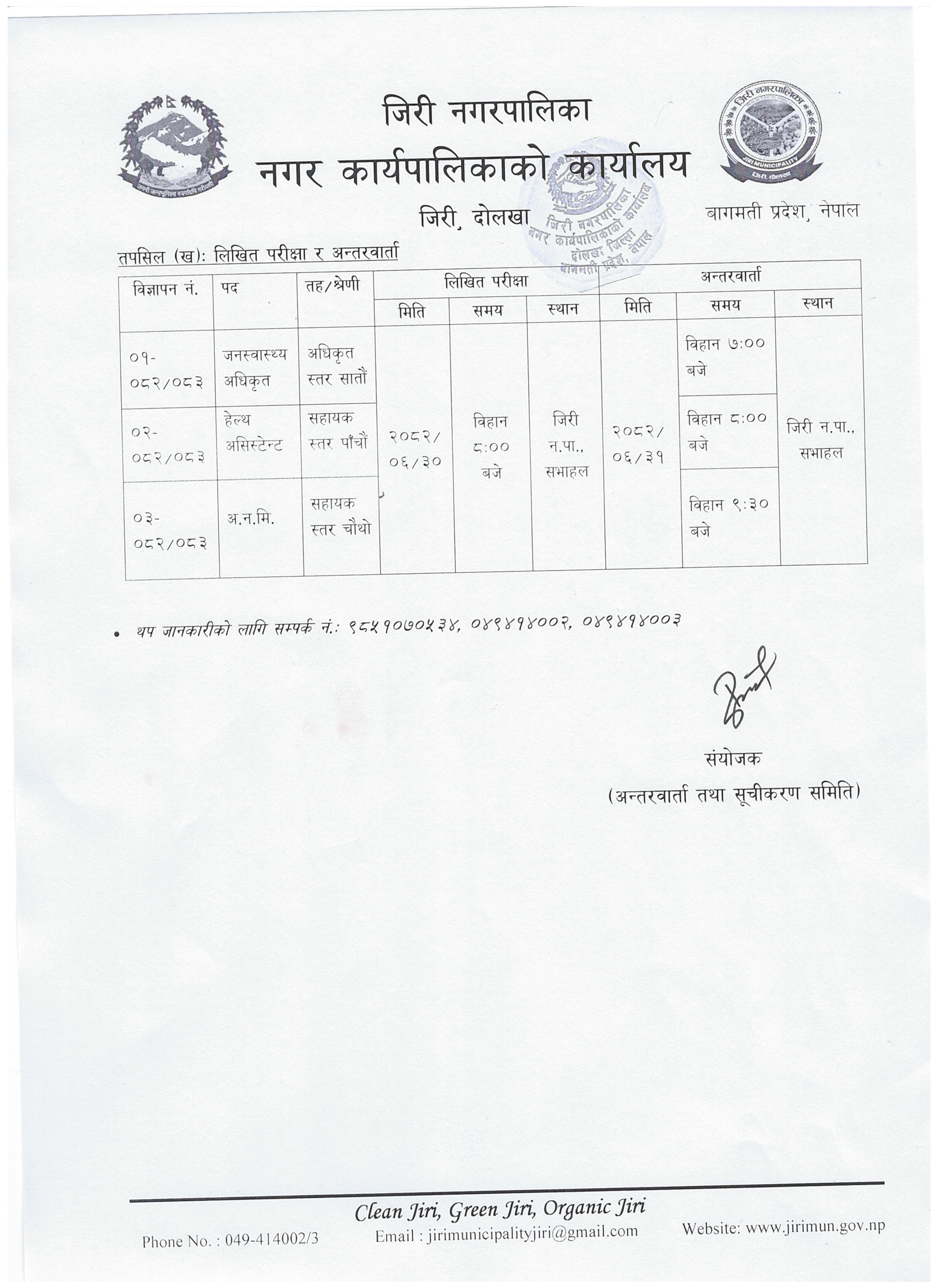 लिखित परीक्षा तथा अन्तरवार्ता सम्बन्धी सूचना ।